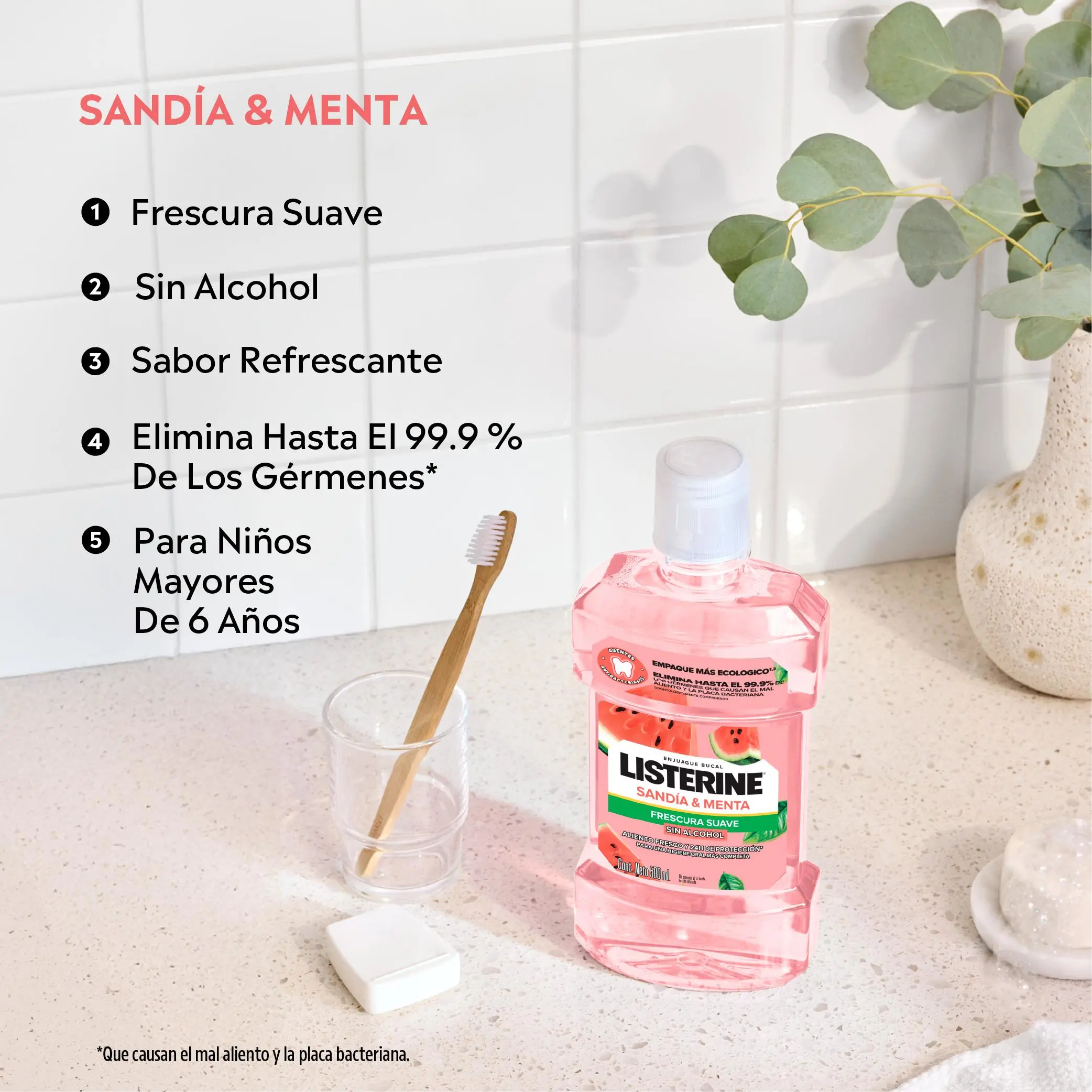 Enjuague Bucal LISTERINE® Sandía Frescura Suave Sin Alcohol 500 ml